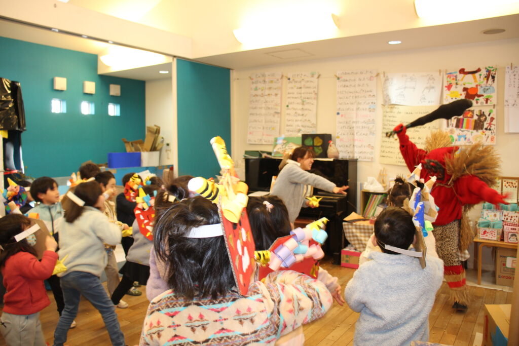 自分の心の中の鬼をやっつけることやクラスで力を合わせて鬼を退治することなどを話し合い、当日を迎えました。